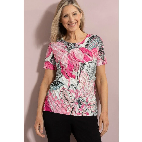 95% polyester, 5% elastane. Back 80% polyester, 20% viscose exclusive of all other trims. This style has an individual look that has been achieved by a special printing technique creating a unique look for each customer. Machine Wash. Back length 66cms.